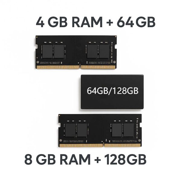 64GB; 128GB (optional) |