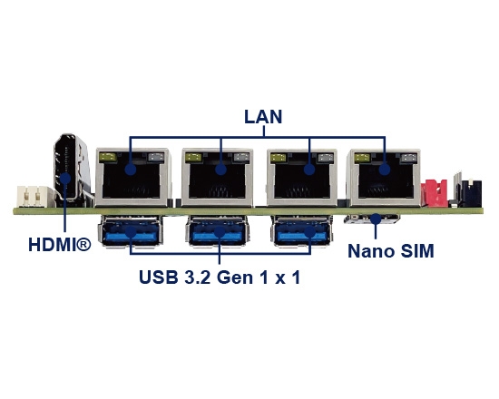 | Expansion Interface | 1 x M.2 M key Type 2280 (SATA / PCIe x4), Support NVMe 1 x M.2 B key Type 3042 (PCIe x2 / USB 3.2 / 2.0) 1 x Nano SIM |
