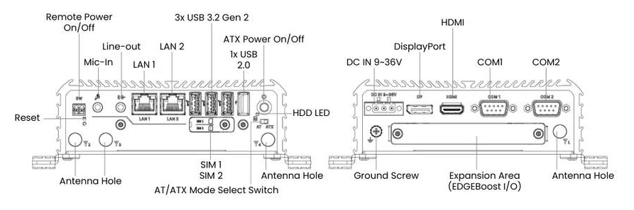 1x M.2 B key-1 SATA/PCIE/USB 3.0 (2242/3042/3052) for Storage |